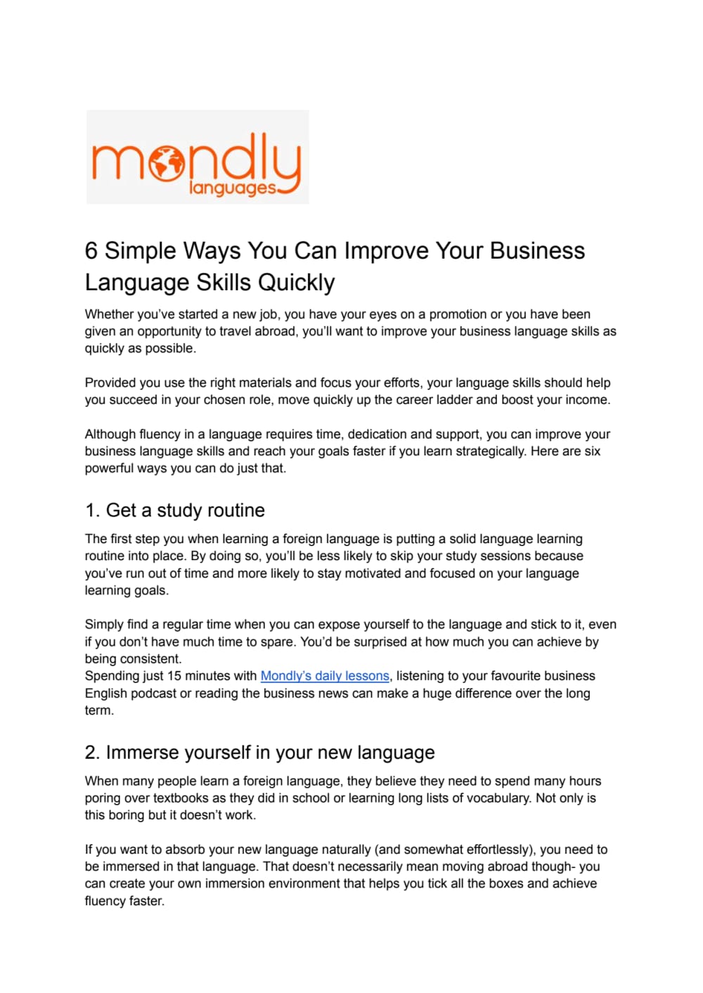 Over a period of several months, I wrote several B2B articles for language learning App, Mondly.
