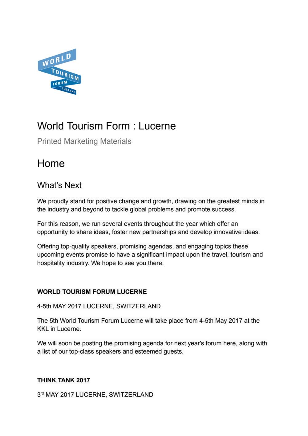 The World Tourism Forum Lucerne needed a native English speaker and copywriter to proofread and edit their non-native English flyers, brochures and website.